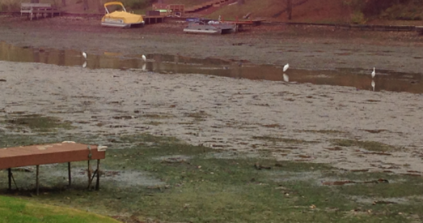 Dam Maintenance Chair Michael Watts has closed the emergency overflow grate so the water level will begin to rise as rain and snow falls. There are still at least two retaining wall projects underway so it will not be brought back to full pool quite yet.