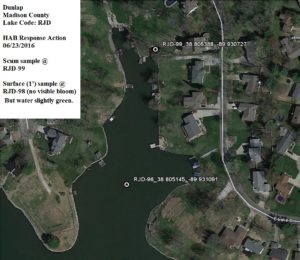 In response, Dunlap Lake Property Owners Association will be looking into the monitoring resources received today and the communications tools recently released to support those efforts. There are no commercial labs in the State of Illinois to do these analyses but there is an Illinois Voluntary Lake Monitoring program and national labs that may be able to test.
