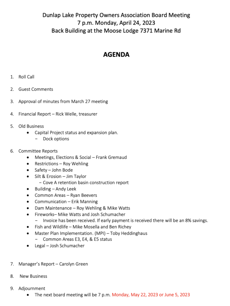 Apr 21, 2023 | HOA / Board, Meetings, Meetings, Election & Social