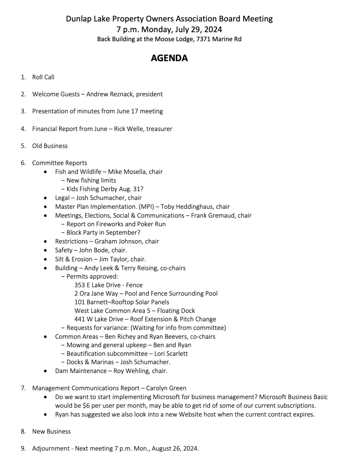 July Board Meeting – 7 p.m. July 29, 2024 Jul 27, 2024 | HOA / Board, Meetings, News, Uncategorized All residents welcome.
